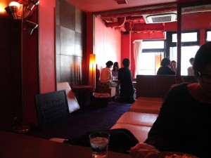 店内はオレンジの壁に紫のふわふわ絨毯。